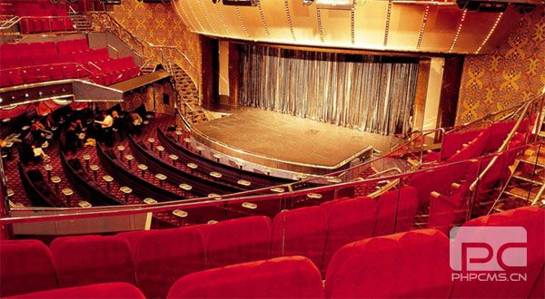红蓝相间的丝绒座椅,精美绝伦的马赛克花纹,独一无二的定制剧目,以及悬挂在上空来自威尼斯Murano的吊灯。