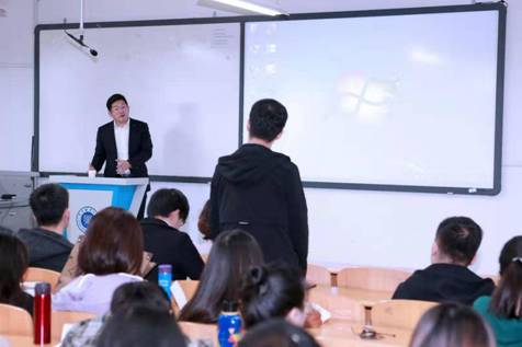 图1 中物网总经理刘建华为2017级国际商务专业同学授课