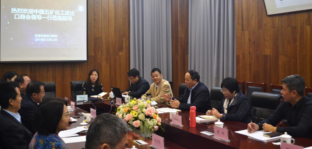 胜利同志首先对江会长一行来我会调研表示热烈欢迎,向客人全面介绍了天津市进出口商会的功能定位、工作规划和发展思路,同时表示,感谢五矿化工进出口商会对天津市进出口商会的支持和帮助。近期两会互动频繁、交往密切,合作势头良好,天津市进出口商会以与中国五矿化工进出口商会签署《友好合作备忘录》为契机,建立更加紧密的联络沟通机制;积极协助五矿商会协调天津口岸相关事务;两会要在在境内外各类展会、专题培训和高层级会议、论坛等领域开展合作。 江会长介绍了五矿商会转变协调管理职能、实施精准服务和完善服务体系的工作情况以及五矿商会 “一个机制、四个平台、八项服务”的组织架构和目标任务,同时希望两会在多方面开展密切合作,实现合作共赢、互利互惠。天津世纪五矿贸易有限公司冯美娟董事长和鲁彤总经理表示,将继续发挥好五矿商会兼职副会长和进出口商会常务理事单位的双重身份的重要作用,做好服务和引领工作,为行业和商会做出更大贡献。江会长对天津世纪五矿反映的企业在知识产权保护方面遭遇的问题,表示要高度关注此事,并向相关部门反映,积极维护企业 的合法权益。在两会代表的共同鉴证下,江辉会长和李胜利同志分别代表两会共同签署了《友好合作备忘录》。商会还协助安排并陪同五矿商会一行拜访了商务部驻天津特派员办事处和市商务局。