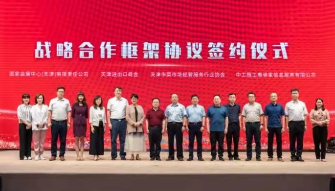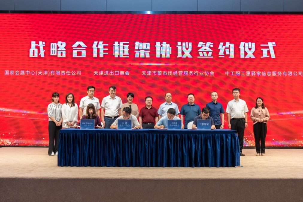 天津市进出口商会与中工服工惠驿家信息服务有限公司、国家会展中心(天津)有限责任公司、天津市菜市场经营服务行业协会举行四方战略合作框架协议签约仪式。四方将本着“相互支持、互惠互利、立足长远、共同发展”的基本原则,发挥各方优势,建立长期战略合作伙伴关系,共同打造天津工惠驿家、司机之家及乡村振兴示范项目。根据合作协议,工惠驿家积极参加商会副会长单位—国家会展中心(天津)有限责任公司的相关展会;并与天津有关单位共同打造以“乡村振兴、永不落幕—农特产品智惠新仓购”为主题的乡村振兴天津示范店;工惠驿家加入天津市进出口商会;工惠驿家积极参与商会的相关活动。