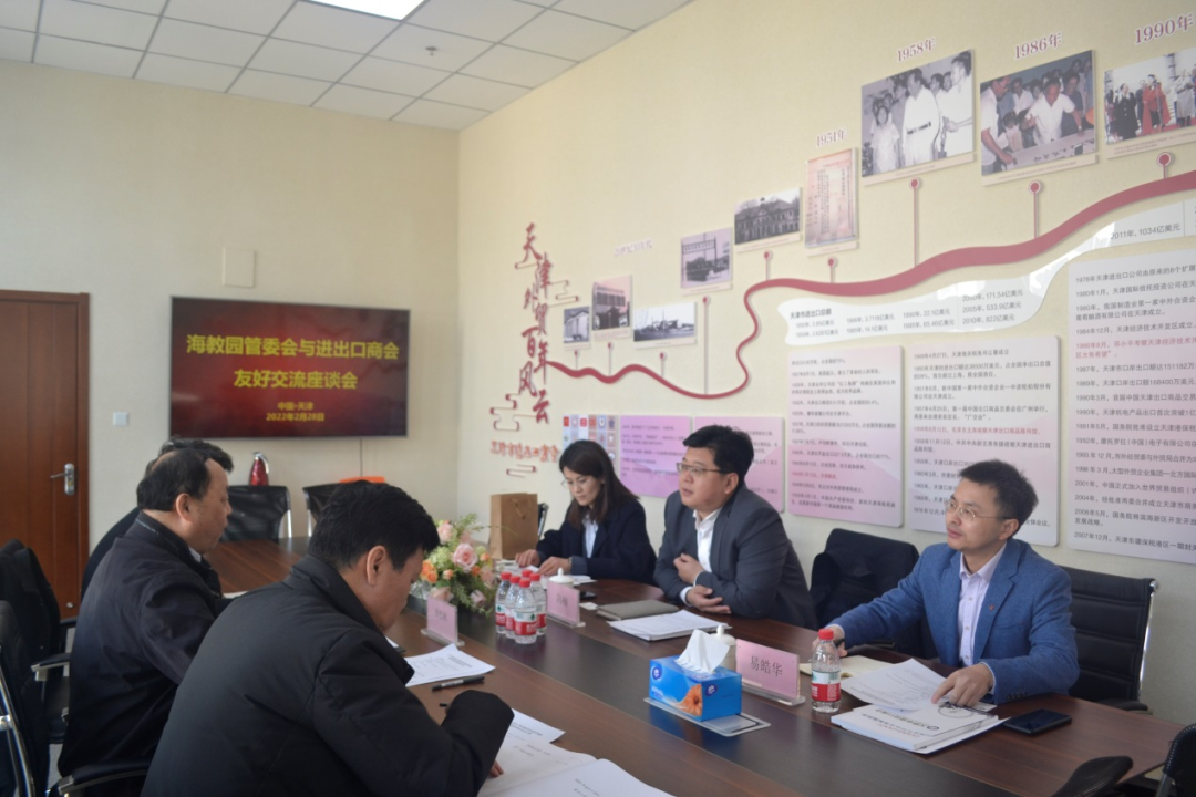 2月28日上午,天津市海河教育园管委会冯楠副主任一行来天津市进出口商会交流对接工作,就怎样更加有效地支持海河教育园转型升级高质量发展进行了深入的探讨。胜利同志接待冯楠同志一行。