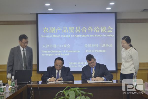 2016年9月19日美国波特兰港务局海事贸易与货运发展高级经理博瑞安先生(Gregory Boraossay)与波特兰港务局驻津代表许馨小姐一行4人拜访我会,共同举办波特兰港推介及农副产品贸易合作洽谈会。进一步加强天津与美国波特兰港的经贸交流与合作,促进了两地企业和机构间的项目对接和信息交流。天津物产国际贸易有限公司、天津食品进出口股份有限公司、天津服装进出口有限公司、天津港保税区蕊鑫和平国际贸易有限公司的企业负责人参加了此次洽谈会。