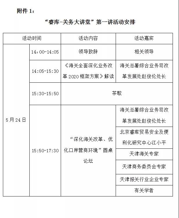 为了使报关行业更好了解海关业务改革与发展状况,引导企业合规经营,促进口岸营商环境改善,天津报关协会配合中国报关协会于2019年5月24日在天津财经大学开展首场“关务大讲堂”公益活动,特邀海关总署综合业务司改革发展处赵俊伦处长就《海关全面深化业务改革2020框架方案》进行解读,并邀请“政、企、协、学”专家以“海关改革和口岸营商环境改善”为专题开展圆桌交流。现将有关事项通知如下: