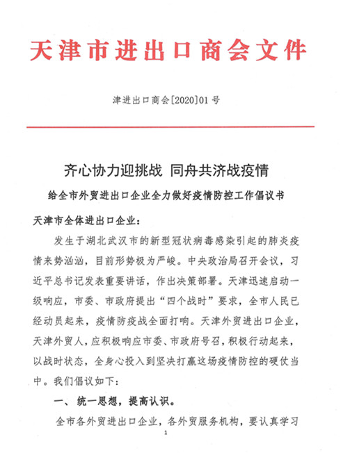 全市外贸进出口企业全力做好疫情防控工作倡议书