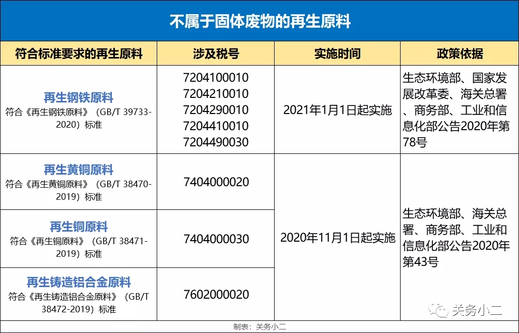 一、符合《再生钢铁原料》(GB/T 39733-2020)标准的再生钢铁原料,不属于固体废物,可自由进口。
